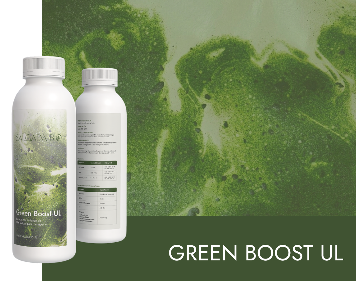 Green Boost UL é un bioestimulante natural de alga verde que fortalece os cultivos e mellora o seu desenvolvemento. O seu formato líquido garante unha aplicación fácil e eficaz.